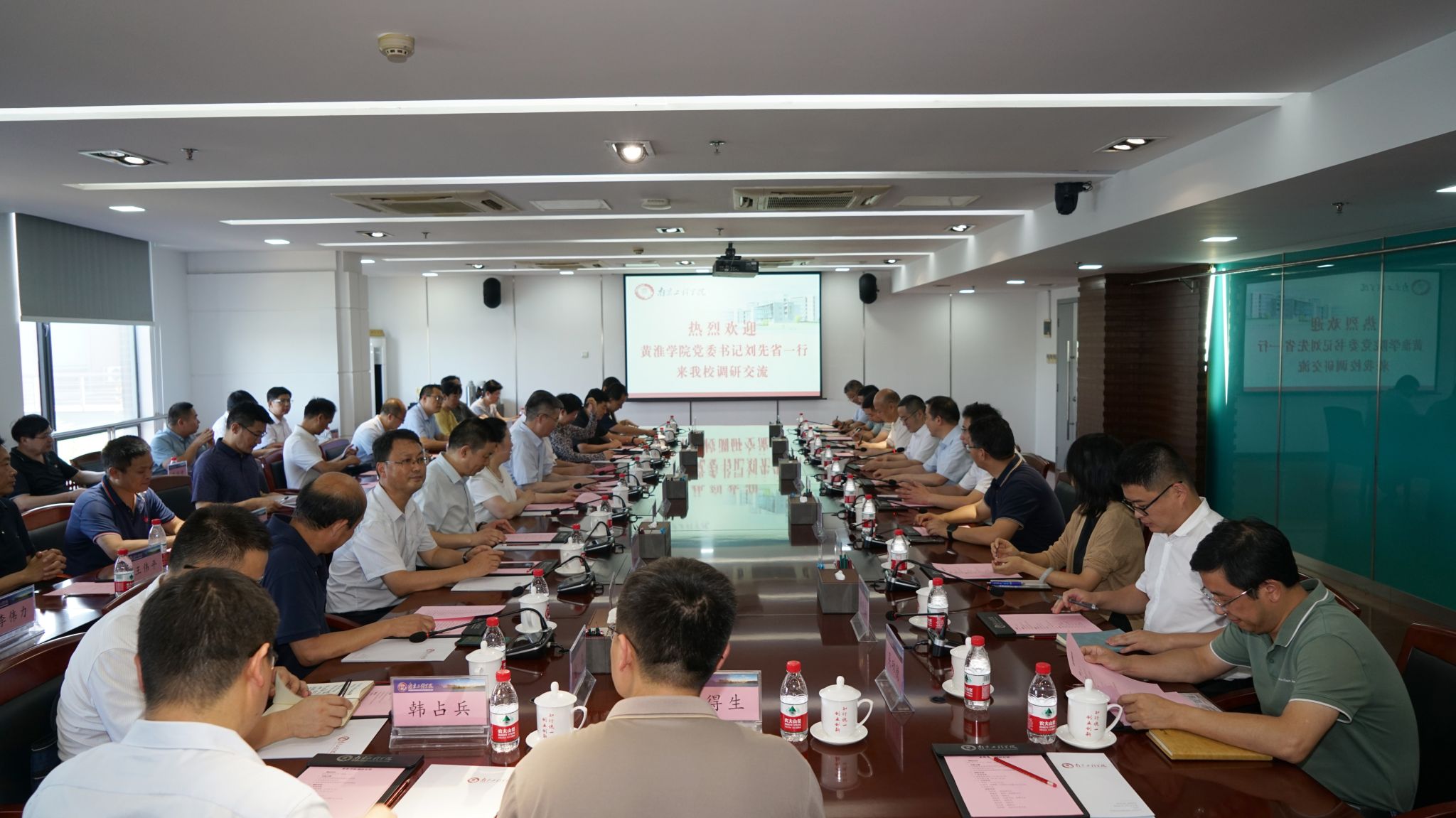 刘先省对学校的热情接待表示感谢,并介绍了黄淮学院的办学历程、办学特色和近年来的发展情况。他表示,两校同为应用型本科高校,在办学定位、办学规模等方面情况相近,且具有相似的办学目标和发展愿景,希望今后在应用型办学、创新创业教育和产业学院建设等方面进一步加强合作交流,携手打造应用型高校合作新典范。