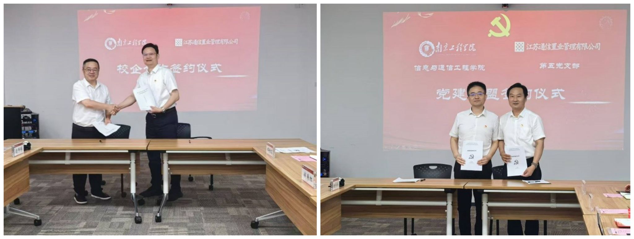 在江苏通信置业管理有限公司,党委书记、总经理沙仙虎热情接待了包永强一行,并详细介绍了公司的发展历程、业务领域及未来发展战略。包永强介绍了beat365的办学特色、学科优势及人才培养成果,表达了加强校企合作、实现互利共赢的期待。会上双方签署了校企战略合作协议。beat365信息与通信工程学院与公司签署校企党建共建协议,并举行实习实训基地揭牌仪式。