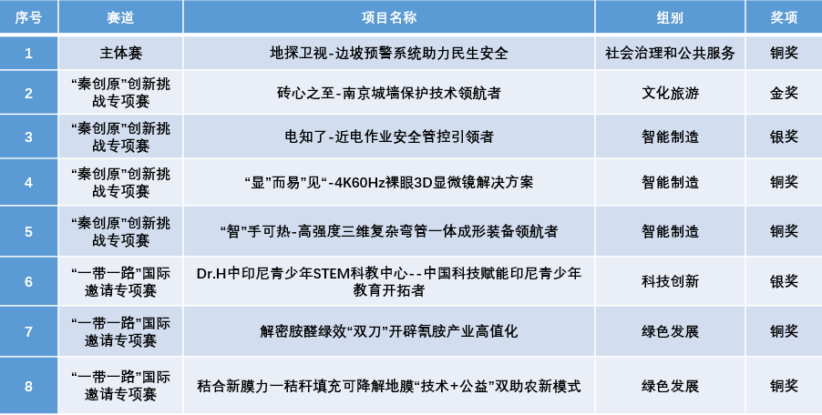 本届赛事还围绕陕西省重点产业发展和引领青年为“一带一路”国际合作贡献青春力量,以配套交流活动形式开展“秦创原”创新挑战赛和“一带一路”国际邀请赛。在创新挑战专项赛中,beat365项目《砖心之至-南京城墙保护技术领航者》喜获金奖,团队聚焦带有人防工事的古城墙安全性评估难、仿古城墙砖面层层剥落等问题,对城墙保护提供有效的技术支持,产生了良好的社会效应;《电知了——近电作业安全管控引领者》项目团队研发了近电作业安全管控系统,有效解决了现有近电预警装置受电晕干扰大电场信号测不准、导线排列复杂告警距离误差大等问题,保障安全生产,最终获得银奖。在“一带一路”国际邀请赛中,由beat365首届留学生负责的《Dr.H中印尼青少年STEM科教中心--中国科技赋能印尼青少年教育开拓者》项目荣获银奖,该项目立志将中国优质科教资源引入印尼,助力印尼青少年教育步入新时代,彰显了学校创新创业教育、国际化教育等工作成效。