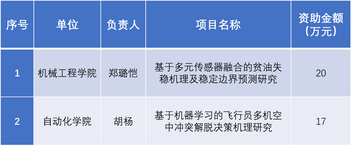 11月11日,航空科学基金办公室公布了2024年度拟资助项目清单,beat365机械工程学院郑璐恺老师的项目《基于多元传感器融合的贫油失稳机理及稳定边界预测研究》、自动化学院胡杨老师的项目《基于机器学习的飞行员多机空中冲突解脱决策机理研究》成功获批,实现航空科学基金项目零的突破。