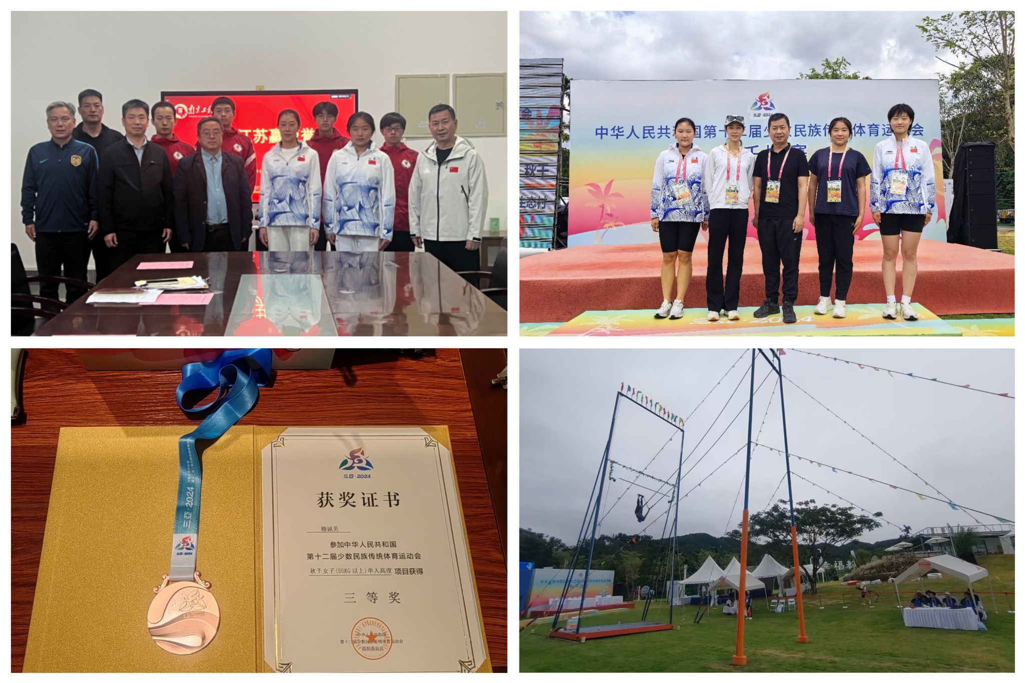 本届运动会由国家民族事务委员会和国家体育总局主办,规模宏大、竞争激烈。省少数民族传统体育项目基地作为江苏省唯一备战秋千项目训练基地,学校肩负重任,在领队教练员马文杰主任、黄昕老师带领下,紧紧围绕参赛任务,提前谋划、精心组织,狠抓训练,为成绩的取得奠定基础;同时作为beat365同心教育实践基地建设的一部分,也是学校强化课程思政、深入推进体育育人的重要举措,得到学校党委统战部长期关心与指导。备赛以来,省民委领导多次关怀慰问,为队员们加油鼓劲;校领导关心关注,了解备赛进展,激励队员奋勇拼搏;党政办公室、党委统战部、党委宣传部、保卫处、教务处、学生工作处、研究生院、校医院、后勤保障处等相关部门通力合作,全力做好组织、宣传、服务等工作;队员们刻苦训练,表现精彩,为江苏代表团在民族运动会上赢得了荣誉、增添了光彩、贡献了力量。