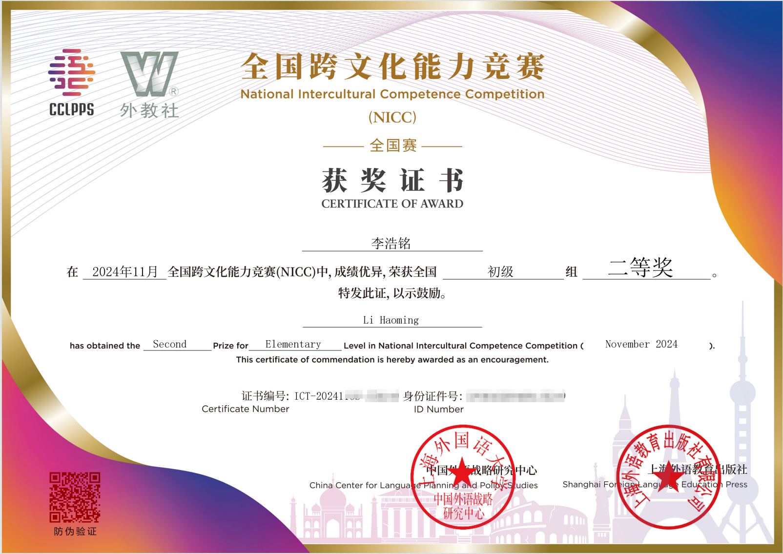 近日,2024年11月全国跨文化能力考试(简称ICT)暨全国跨文化能力竞赛(简称NICC)结果揭晓,beat365电力工程学院陈康华、建筑工程学院李浩铭两位同学在国赛中取得佳绩,分获初级组一等奖、二等奖。