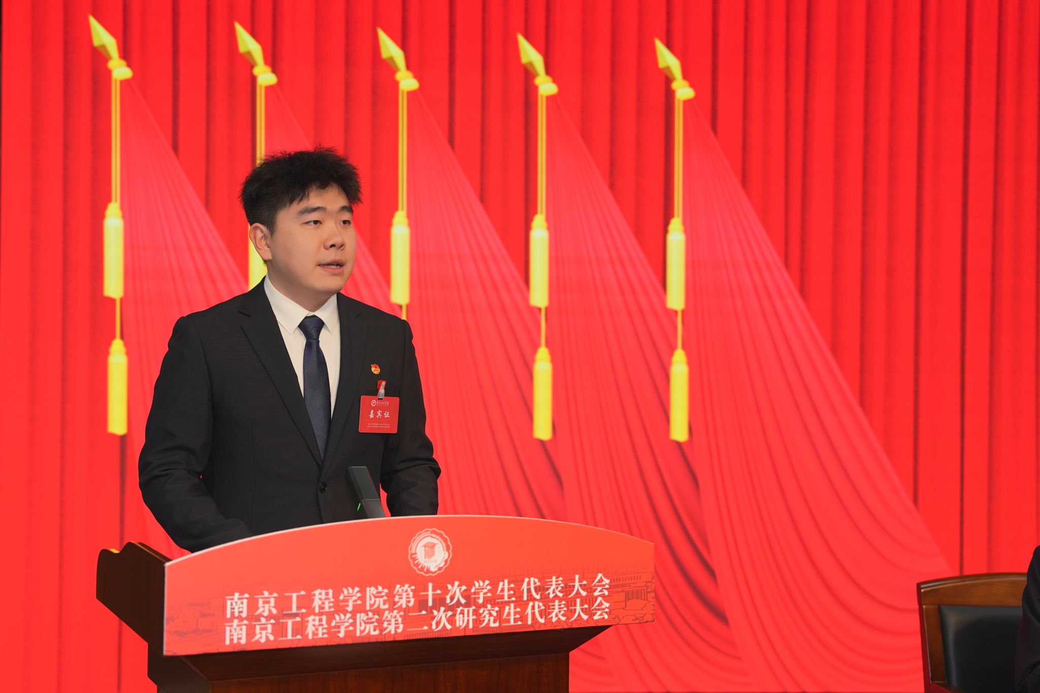 孙煜顺代表兄弟高校学生会组织致辞。他表示,南京航天航空大学学生会将一如既往地加强与南工程学生会的协作与互动,踔厉奋发,携手并进,为全省高校学生会工作贡献更大的力量。