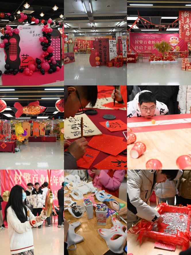 内场游戏环节由各学院、校级学生组织共同组成20个活动区域,提供了50余个风格迥异、妙趣横生的游戏项目。有“反转乐园”“猜灯谜”“芯片翻牌大考验”考验脑力,“贪吃蛇”“新年光盘拔河大赛”“幸运骰子争霸赛”体验团结协作的快乐,还有自由欢快的“铜锣敲响福年新”“拓印体验”,惊心动魄的“极限竞速”“金蛇舞铲”等。活动现场热闹非凡,同学们全情投入,尽情地享受着游戏带来的欢乐。
