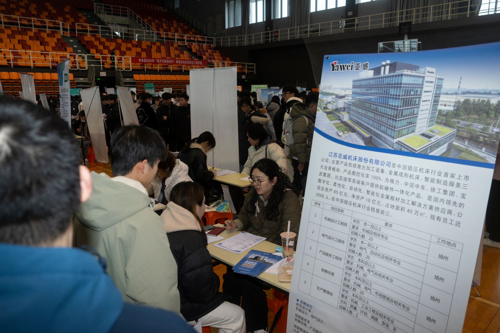 本次招聘会是继校地融合专场招聘会后的第二场春季校园综合招聘会,也是寒假以来校院两级“访企拓岗”工作成效的集中体现。参会企业覆盖领域广泛,与学校专业匹配度高,行业特征鲜明 。招聘会共邀请到国电南瑞科技股份有限公司、中国电子科技集团公司第二十八研究所、中天钢铁集团有限公司、江苏方天电力科技有限公司、江苏沃得农业机械股份有限公司、江苏亚威机床股份有限公司等180家优质单位,提供岗位1200余个。活动现场人头攒动、气氛热烈,毕业生们积极与企业人事专员沟通交流、投递简历。不少低年级学生自发前来了解本专业对口企业的岗位情况,开展职业体验 。