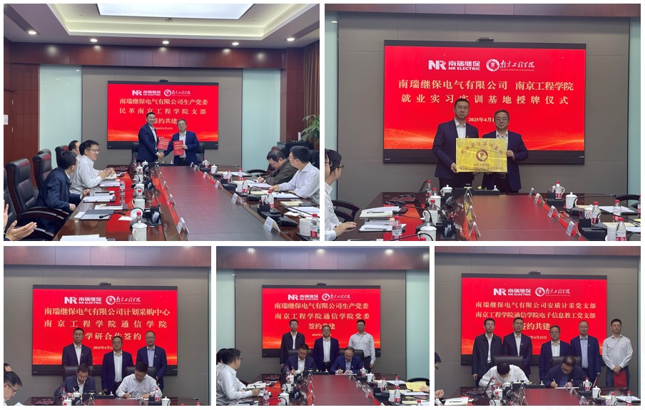 在与会人员的共同见证下,学校通信与人工智能学院、集成电路学院党委、民革beat365官方网站支部分别与南瑞继保电气有限公司生产党委签署共建协议;通信与人工智能学院、集成电路学院与南瑞继保计划采购中心签署产学研合作协议,并为就业实习实训基地授牌;通信与人工智能学院、集成电路学院党委电子信息教工党支部与南瑞继保电气有限公司安质计采党支部签署合作共建协议,共同推进样板党支部建设。