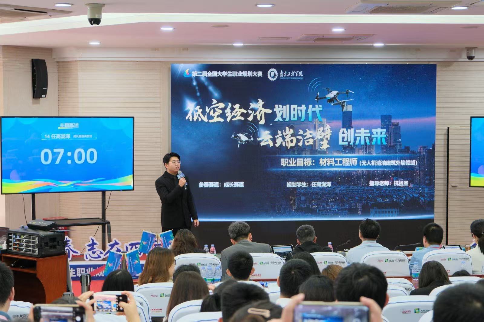 任高泷泽同学以“低空经济划时代,云端洁壁创未来”为题,讲述了自己聚焦于材料工程师(无人机清洁建筑外墙领域)这一职业目标的心路与实践历程。他从高中化学学习的“逆袭”经历出发,逐步明确了将材料科学与低空经济相结合的职业方向。在校期间,他依托学校丰富的教育教学资源、良好的创新创业氛围,积极参与科研实践,作为第一负责人带领团队获得二十余项创新创业大赛奖项,并在江苏省产学研合作对接大会上展示项目成果,积累了丰富的实践经验,也明确了自身职业发展目标。他的成长经历,是校训“学以致用”的生动写照,也印证了职业规划大赛“以赛促学、以赛赋能”的育人价值。