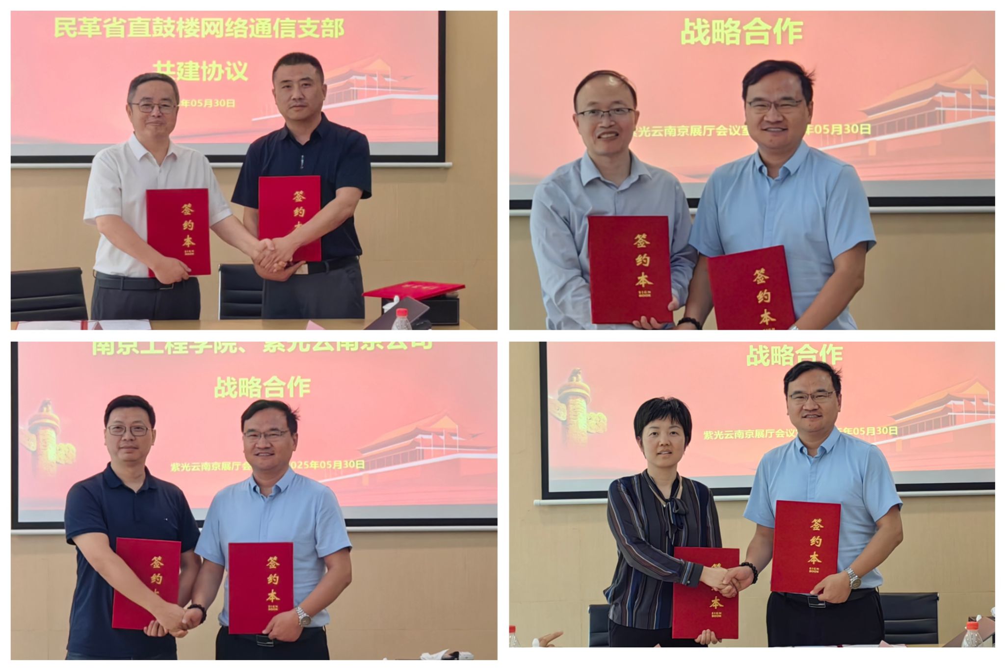 交流期间,通信与人工智能学院、集成电路学院与紫光云(南京)数字技术有限公司签署党建共建及产学研合作协议,民革省直beat365官方网站支部与民革省直鼓楼网通支部签署共建协议。