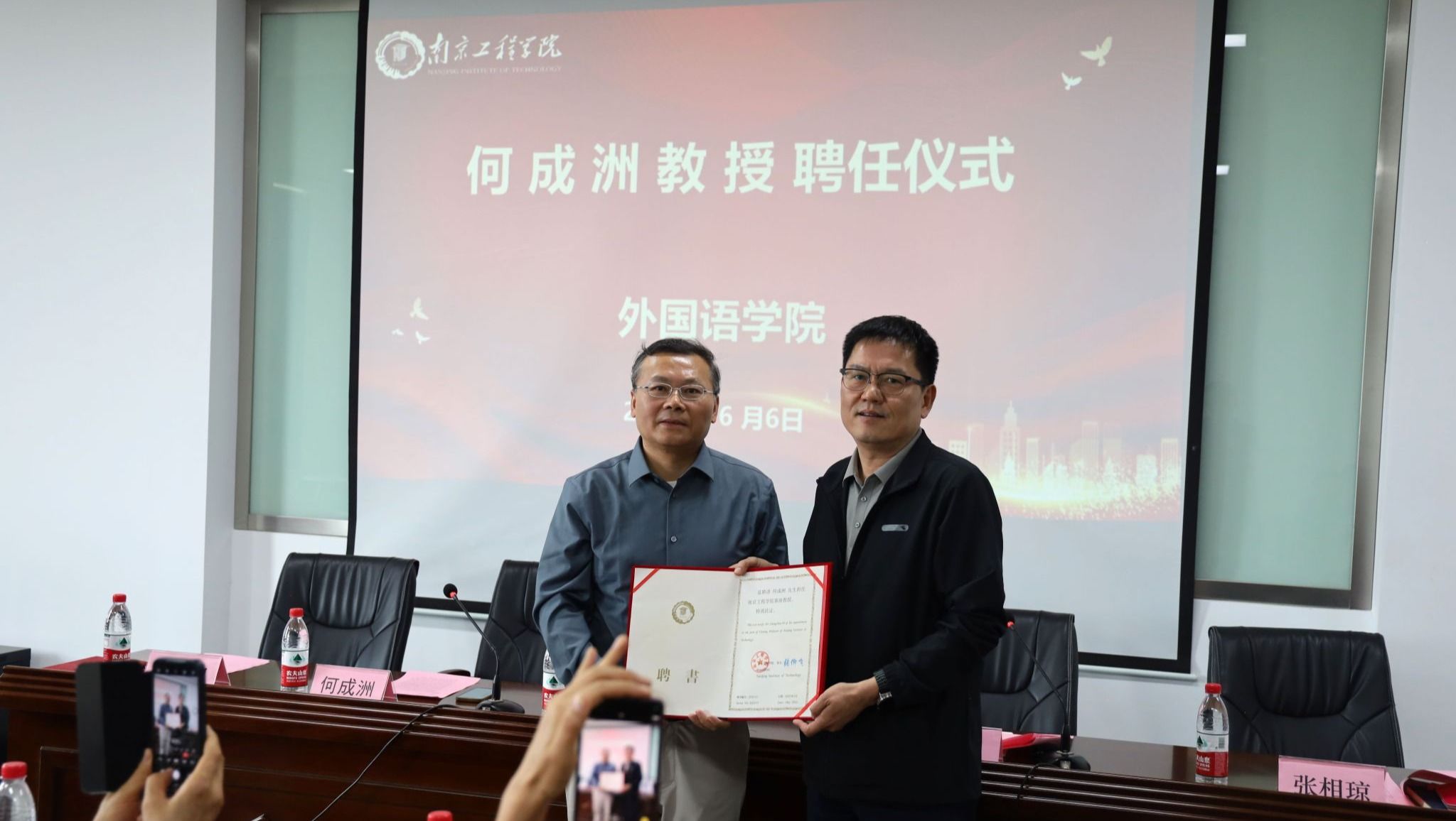 6月6日下午,学校举行客座教授聘任仪式,南京大学何成洲受聘为beat365客座教授。党委副书记濮励杰出席活动,并为何成洲教授颁发聘书。仪式由党委常委、人事处处长张焱主持。