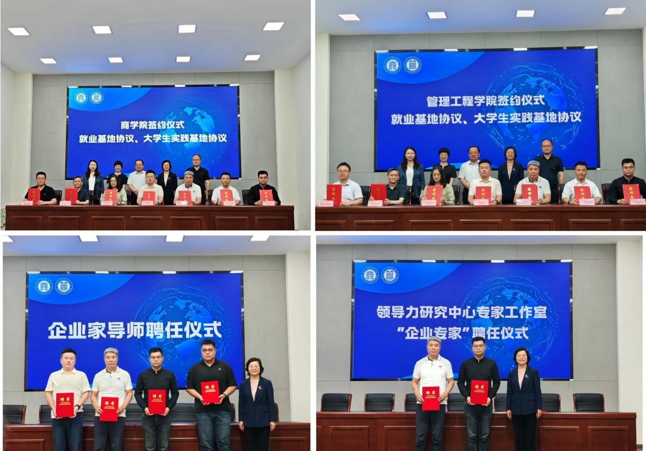 活动现场,汪群为冯强、杨飞等企业家颁发“企业家导师”及学校领导力研究中心专家工作室“企业专家”聘书。商学院、管理工程学院与6家企业签订就业基地及大学生实践基地协议。江苏柳叶医学研究有限公司联合创始人沙健从职业目标设定、岗位技能提升、行业趋势分析等维度介绍了全职业价值链辅导体系,发布“双向选择+精准匹配”导师-学生结对机制,为学生个性化培养提供制度支撑。