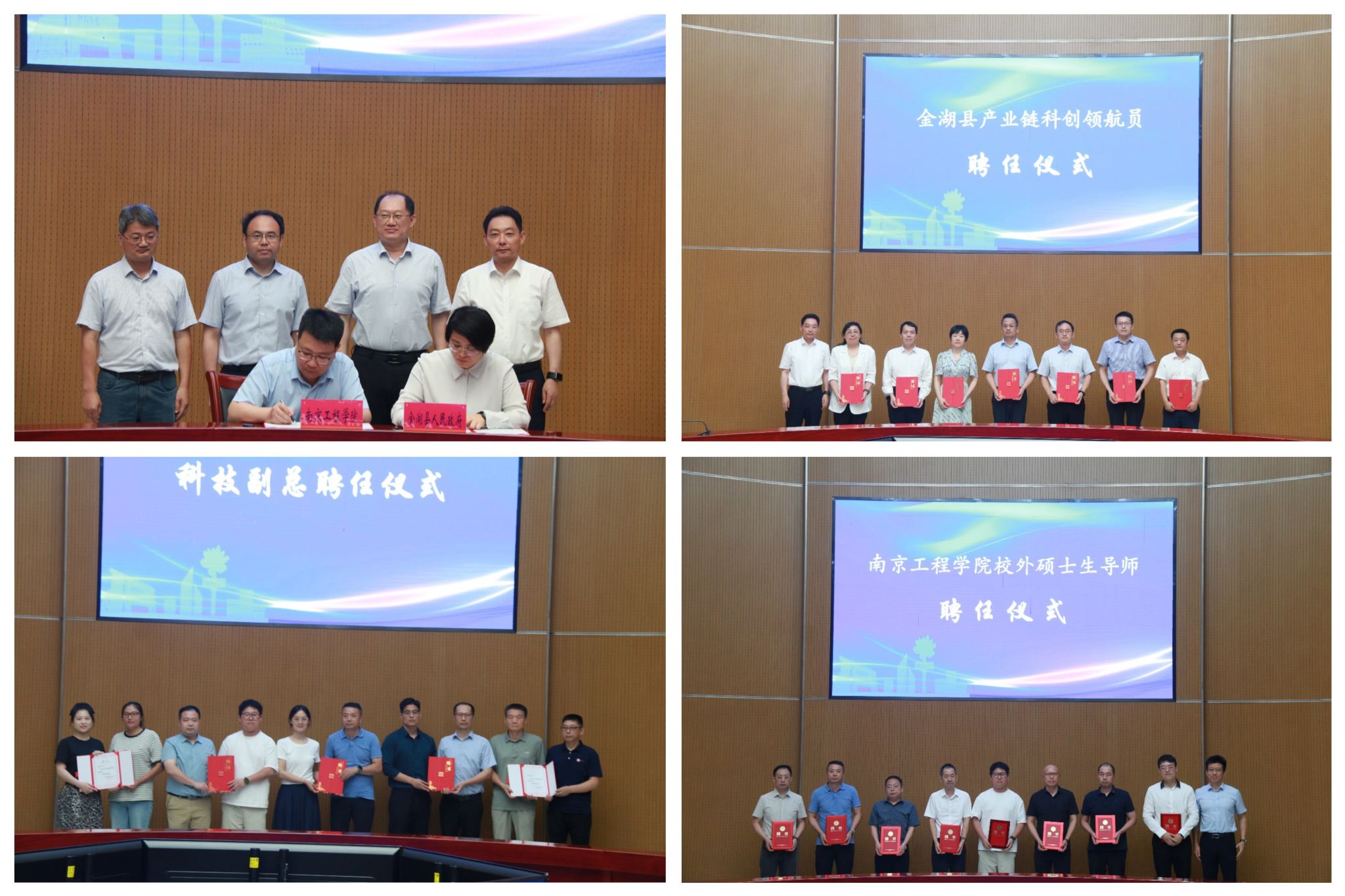 会议举行了beat365官方网站与金湖县人民政府校地全面合作框架协议签约仪式、骨干企业科技副总聘任仪式、产业链科创领航员聘任仪式以及学校校外硕士生导师聘任仪式。相关学院负责人分别进行了院情介绍及科技成果推介。