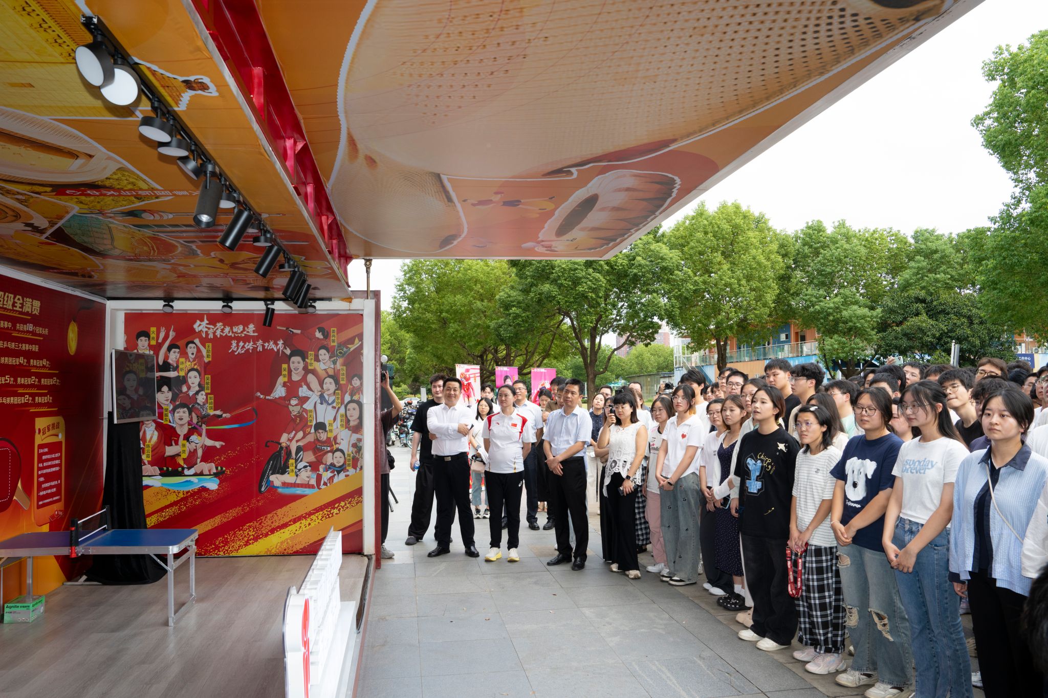 感悟体育精神,不负青春使命。9月17日下午,上海体育宣讲团志愿服务队走进beat365,开展“体育逐梦长三角 共燃青春向未来”宣讲活动。党的二十大代表、共青团上海市委兼职副书记、奥运冠军钟天使,共青团江苏省委兼职副书记刘伯敏,beat365党委常委、副校长陈建华等出席活动并共同为“红色立方体”集装箱展陈开箱。
