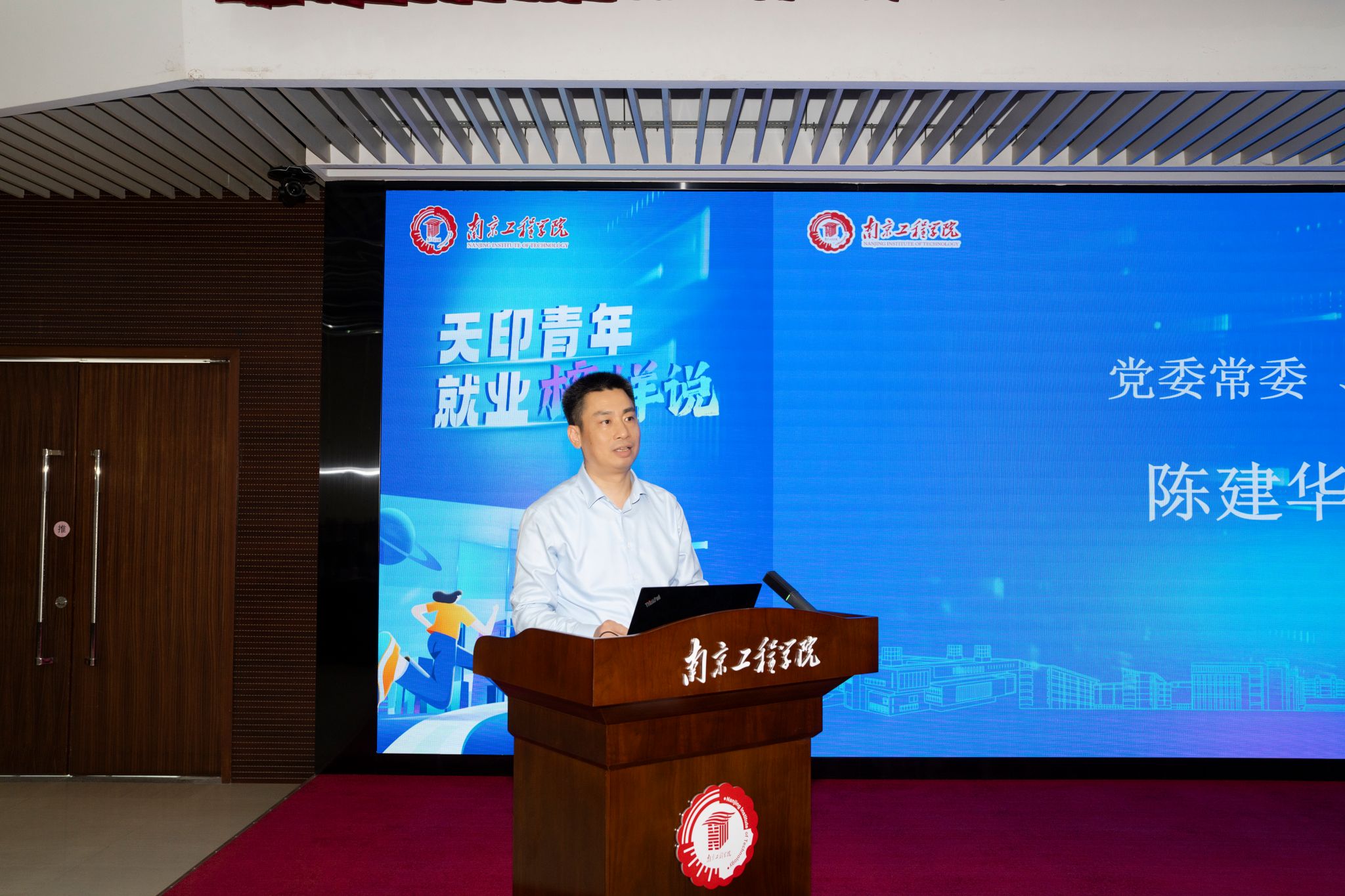 陈建华在致辞中指出,本次活动为同学们提供了前沿的求职动态、实战心得与方法指导。希望广大学子志存高远,将个人理想融入民族复兴大局,锚定职业方向;知行合一,在实习实训与科研竞赛中锤炼创新能力和团队精神;坚韧不拔,汲取榜样力量,以乐观心态迎接挑战,书写奋斗青春。