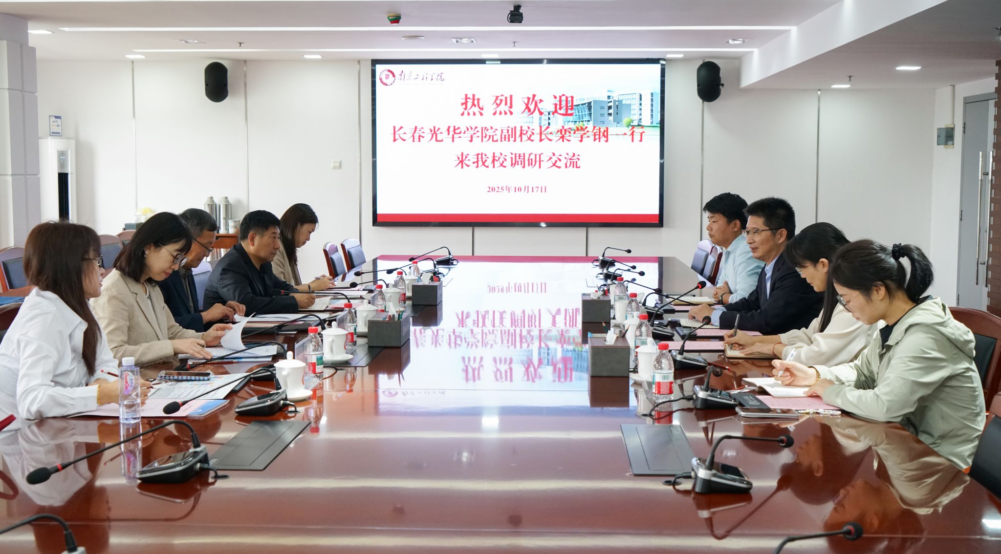 10月17日上午,长春光华学院副校长栾学钢率队来校调研交流。党委常委、副校长朱松青在至勤楼・行政中心北303会议室热情接待来宾并座谈。