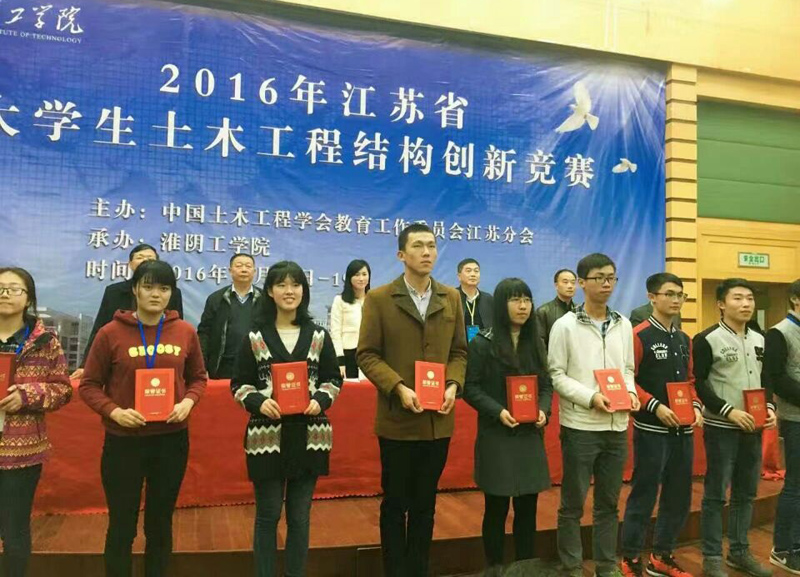 11月18日—20日,由中国土木工程教育委员会江苏分会主办的江苏省大学生土木工程结构创新大赛在淮阴工学院举行。东南大学、河海大学、中国矿业大学等35所高校组队参赛。经过激烈角逐,beat365建筑工程学院工程管理131班翟航等3名同学设计的模型获一等奖,建筑工程142班陈兴鹏等6名同学设计的模型获二等奖;建筑工程144班洪昊等3名同学设计的模型获三等奖。
