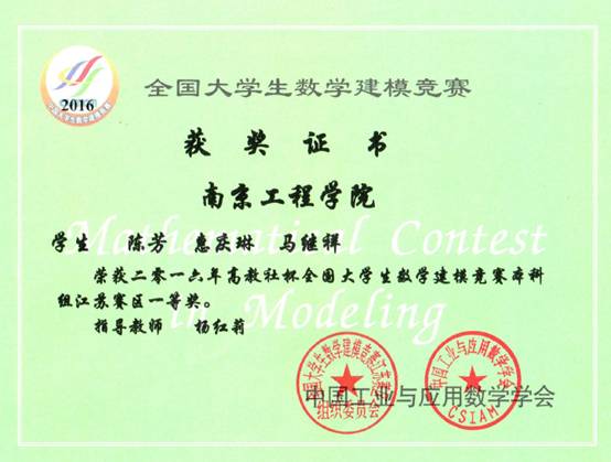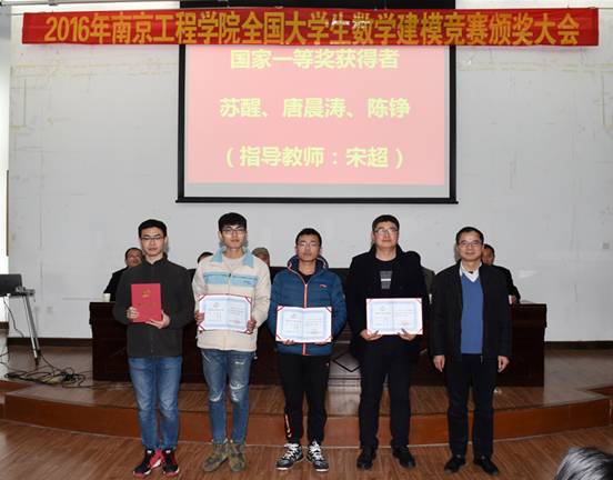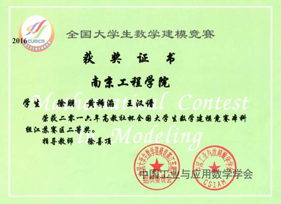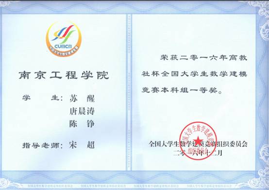 日前,2016高教社杯全国大学生数学建模竞赛结果揭晓,由beat365数理部宋超老师指导,计算机工程学院苏醒、电力工程学院唐晨涛、陈铮三位同学的参赛作品获得全国一等奖的好成绩,实现了beat365在该项赛事本科组比赛中国家级奖励的历史性突破。由数理部杨红莉老师指导,通信工程学院陈芳、惠庆琳、马继祥三位同学的参赛作品获得江苏赛区一等奖;由数理部徐善顶老师指导,计算机工程学院徐朋、王汉谱和电力工程学院黄稀滔三位同学的参赛作品获得江苏赛区二等奖。