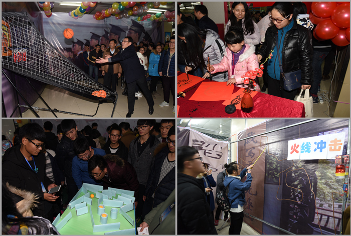 现场鼓乐喧天,喜气洋洋,同学们兴致勃勃地参加各单位精心准备的迎新年游戏节目。本次游园会的节目丰富多彩,会场分为20个游戏区域,共有70余个风格迥异、妙趣横生的游戏项目:彰显智慧的侦探游戏“福尔摩斯的下午茶”、与现代科技完美契合的“超级玛丽”、考验游戏者敏捷度、控制力量能力的“天空之杯”、充满传统特色的猜“灯谜”、回归童年、回归童趣的益智小游戏“有意挑‘刺’”、“看这!看那!”……活动现场人声鼎沸,欢声笑语不断,同学们沉浸于妙趣横生的游戏中,享受着跨年的喜悦,在游戏中流露对新年的期盼,在活动中彰显出南工程的温暖。