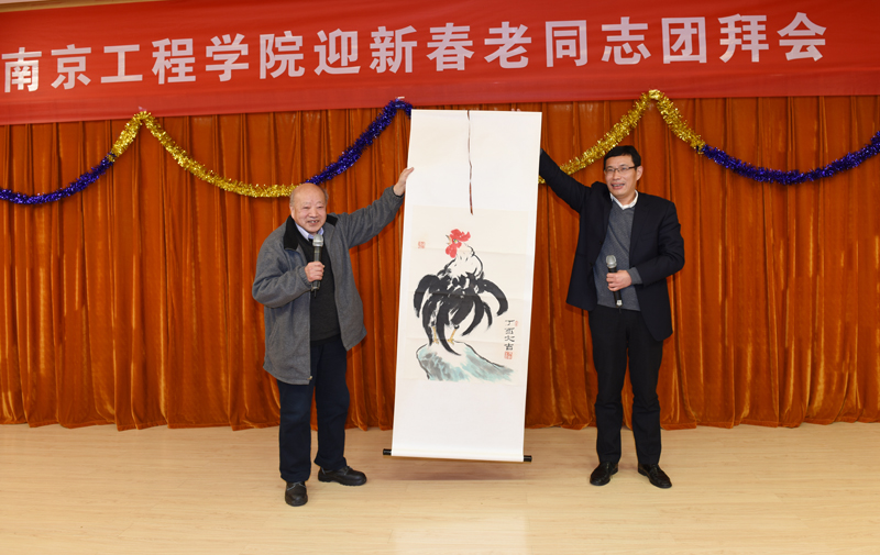 团拜会为老同志们精心准备了文艺节目,全体校领导带来了高亢激昂的小合唱《团结就是力量》,表达了团结一心,带领全校师生员工向着高水平应用型工程大学奋力迈进的信心和决心。教职工表演的歌曲《好运来》、《茉莉花》、《在那遥远的地方》、舞蹈《我们的生活充满阳光》等充满欢乐祥和气息的节目相继登场,为老同志们带去了温馨的新春祝福。团拜会上,老同志亲切交谈,互致问候,他们被现场欢乐的气氛感染,纷纷拿出手机拍照留念。八十六岁高龄的老校长冯轩同志还特地泼墨赠画,表达了所有老同志对学校各项事业的发展的希望和祝愿。张仰飞副院长代表学校接受了赠画,并表示学校将一如既往重视老同志的工作,共同祝愿所有老同志都有个幸福晚年,祝愿学校明天会更好。