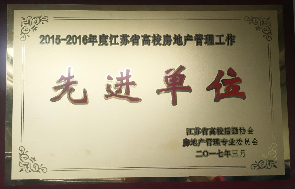 日前,江苏省高等学校后勤协会房地产管理专业委员会2016年年会召开,beat365获“2015-2016年度江苏省高校房地产管理工作先进单位”称号。