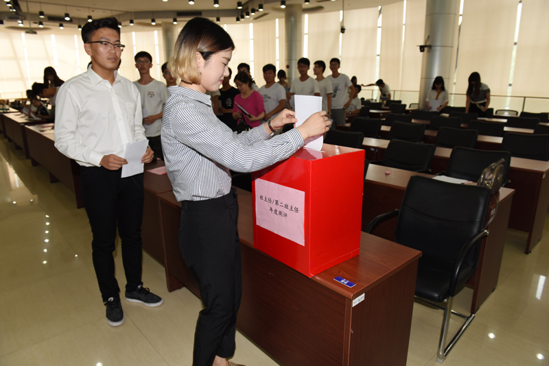 班会最后,材料161班全体同学对班主任、第二班主任年度工作进行了无记名测评。