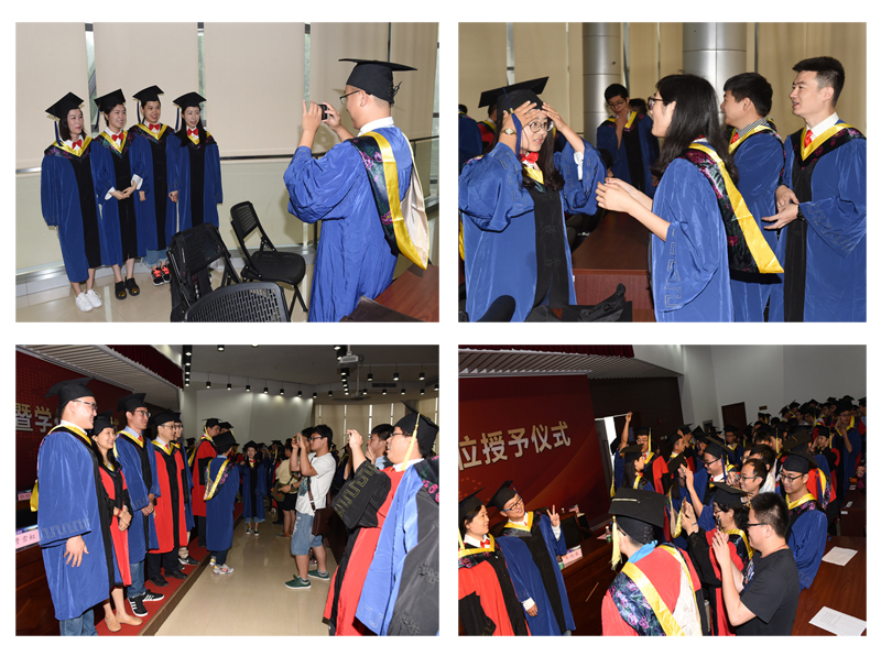 曹雪虹副院长宣读校学位委员会决议之后,与会校领导和导师为2017届硕士学位获得者颁发硕士学位证书并一一为他们拔流苏并合影留念,参加典礼的师生和家长们纷纷举起相机、手机,拍下这激动人心的时刻。典礼最后,全体研究生庄严宣誓:“今天我以母校为荣,明天母校以我为傲。”
