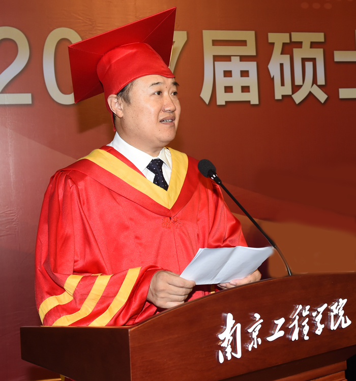 毕业典礼上,院长孙玉坤向毕业的硕士专业学位研究生表示衷心祝贺,向对同学们给予倾心指导和关怀的老师、亲友致以诚挚的敬意。孙院长说,同学们三年来取得的各项成果,为学校增添了蓬勃的发展生机和重要的创新力量;同学们用行动诠释了校风校训,用成果展现了青春风采。他表示,三年的研究生教育是枯燥的、艰苦的,需要潜心钻研、刻苦攻关,埋头苦读,同学们经受住了考验,更加睿智和成熟,更加稳重和坚毅。他为大家取得的成就感到骄傲和自豪。在同学们即将背上行装,离开校园,走向大千世界之时,孙院长代表学校送上了诚挚的嘱咐:希望同学们走出校园后要学无止境,永葆创新求知之欲望;坚定信念,养成勤奋刻苦之习惯;志存高远,恪守为国为民之情怀。希望同学们在新的征程上带着对知识的渴望、对理想的坚持、对责任的担当,去开拓美好而精彩的未来。