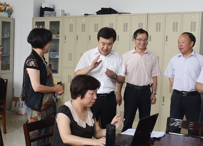无论在教研室、会议室还是资料室,都能看到大家忙碌的身影,有些已经退居二线的老教授、老教师顶着高温赶到工作现场进行指导,有些老师工作到晚上七、八点钟才离开学校……校领导每到一处,都会亲切询问师资配备、条件保障以及目前工作的进展情况,孙玉坤院长代表学校向一线老师们表达感谢和问候,赞扬他们兢兢业业、乐于奉献的精神,同时叮嘱大家在做好工作的同时,一定要注意防暑降温,保重身体。针对下半年即将到来的本科教学审核评估工作,孙玉坤院长希望各相关职能部门和教学单位要按照迎评工作的部署和进度要求,做实、做细、做好相关工作;要做到迎评促建工作和教育教学工作整体部署、全面推进,促进学院各项事业再上新台阶。