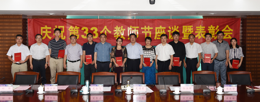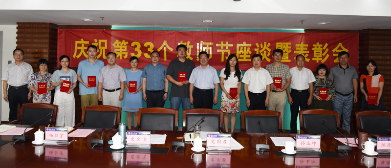 9月8日上午,在第33个教师节即将到来之际,beat365在至勤楼·行政中心303会议室召开庆祝教师节座谈暨表彰会,党委书记史国君,院长孙玉坤,党委副书记、副院长史金飞、陈德静,副院长杨征宇、朱晓春、郑锋,部分职能部门与24名优秀教师代表齐聚一堂,共同庆祝自己的节日,共话学校美好愿景。会议由党委书记史国君主持。
