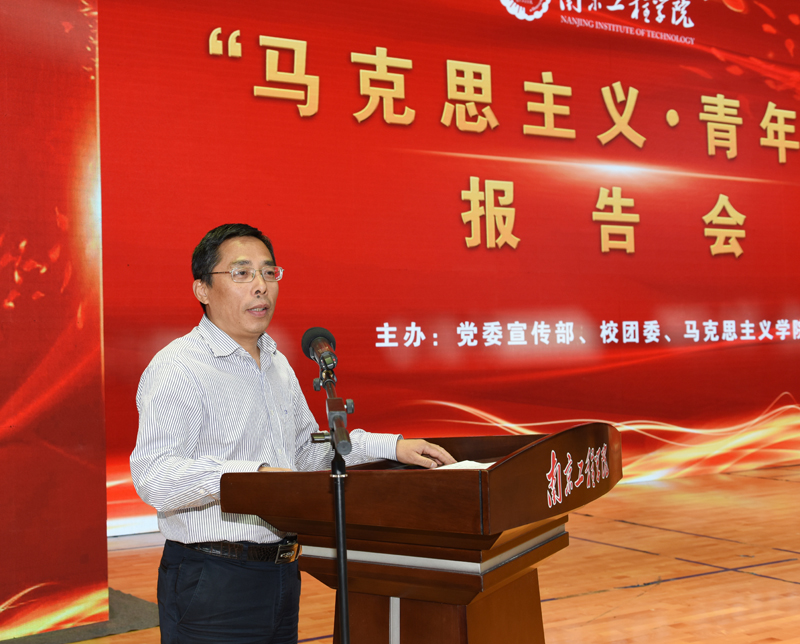 陈传善副教授是江苏省委组织部“两学一做”讲师团成员、江苏科社学会秘书长,他为本次报告会作了开场报告——《扣好人生的第一粒扣子》。他从“马克思为何能成为千年思想家”、“青年为何要扣好人生第一粒扣子”、“青年应以社会主义核心价值观为基本遵循”三个部分进行深入阐述,以马克思正确地扣好了“为人类幸福而工作”的第一粒扣子激励在场的青年学生认真扣好“人生第一粒扣子”,要在勤学、修德、明辨、笃实上下功夫,下得苦功夫、求得真学问,加强道德修养。