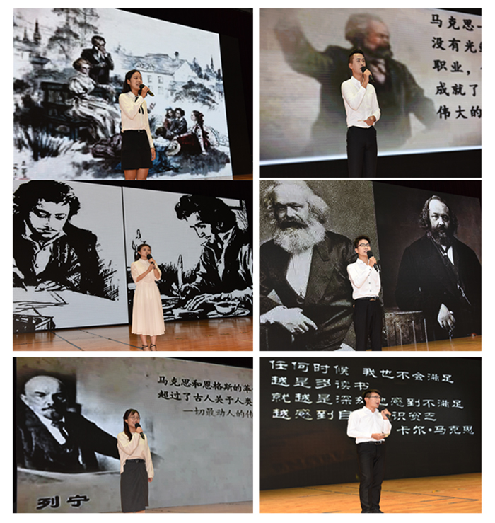 马克思的一生都在为共产主义而献身,为人类幸福而工作。报告会上,beat365六位同学通过从求学、择业、爱情、家庭、友谊、读书六个方面用六个故事讲述了马克思平凡而伟大的人生。《走向那条学无止境的荆棘路》讲述了马克思用执着、坚定让求学之路熠熠生辉的故事,激励在场的青年学生坚定目标,实现理想;《全人类的幸福就是我的幸福》从当前青年求职存在的问题,引出并阐释了马克思为全人类谋幸福的择业观;《“穷小子”与“富家女”的坚贞爱情--给燕妮》则为现场观众展现了马克思与燕妮坚贞的爱情,引发了关于爱情本质意义的思考;《贫苦40年又如何?!》展现了马克思“贫贱不能移,威武不能屈”的大丈夫本色;《挚友情,万年长》以马克思与恩格斯深厚的友谊,说明了建立在共同信仰和追求之上的友谊才是万古长青,牢不可破的;《马克思的自白,一生最喜欢的事—啃书本》讲述了马克思对阅读的热情与喜爱,鼓励同学们把阅读作为兴趣,努力充实提高自己。
