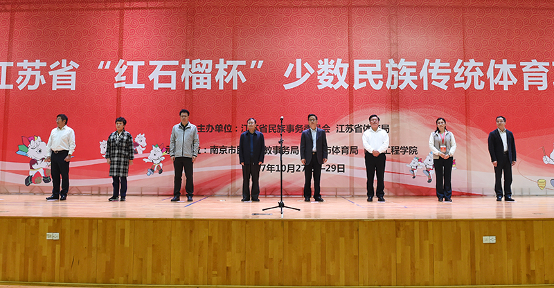 国家民委文宣司副司长李志伟,省委统战部副部长、省民族事务委员会主任李国华,省体育局局长陈刚,省民族事务委员会副主任方未艾,中国少数民族体育协会常务副秘书长陆文梅,南京市民宗局局长苏宇红、南京市体育局局长陈卫红;beat365党委书记史国君、副院长郑锋等领导出席28日上午举行的开幕式。开幕式由方未艾主持。
