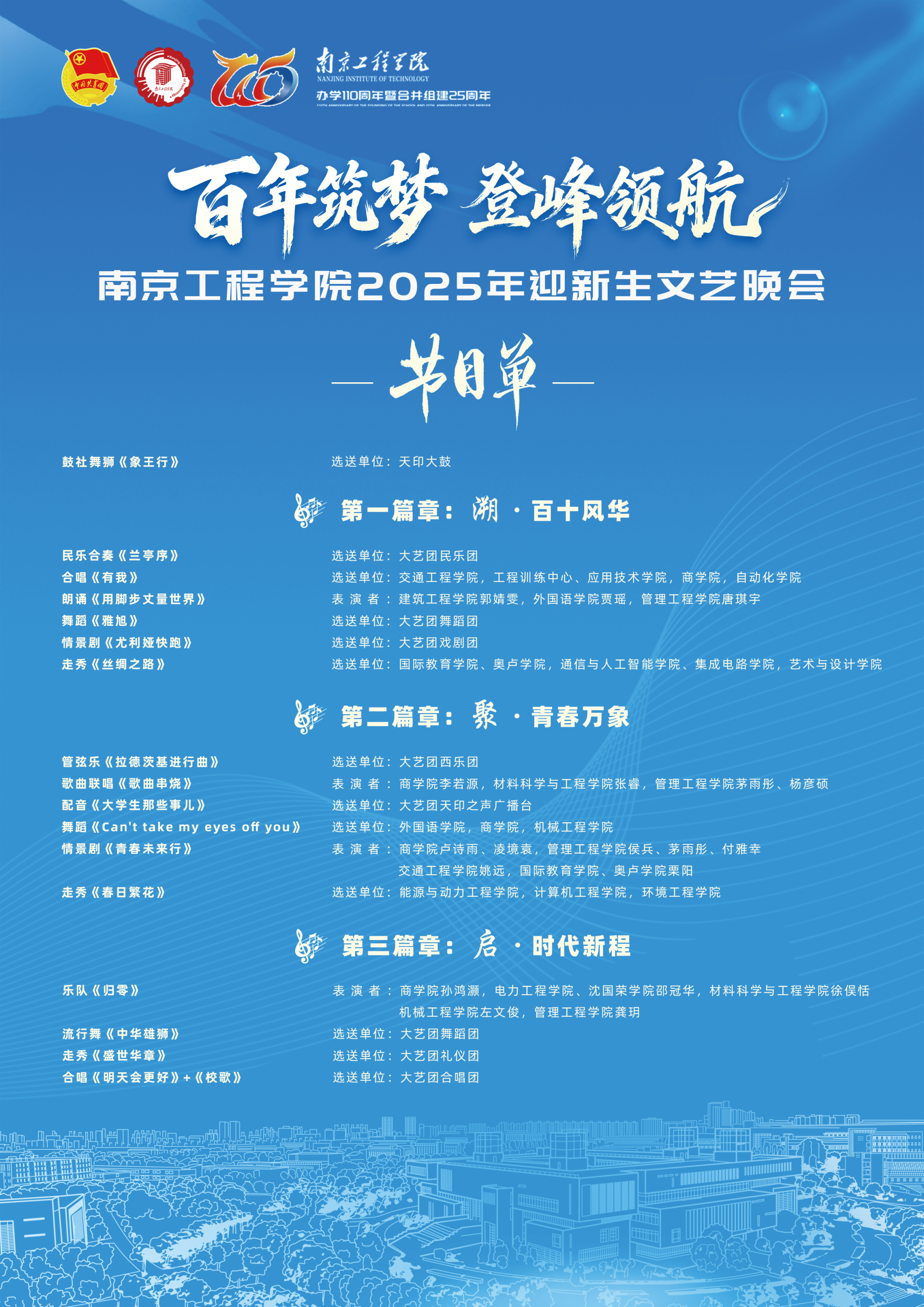 为庆祝学校办学110周年暨合并组建25周年,欢迎2025级新同学,充分展现学校深厚的文化积淀与蓬勃的青春风采,学校定于2025年9月26日举办迎新生文艺晚会。现将有关事宜通知如下。
