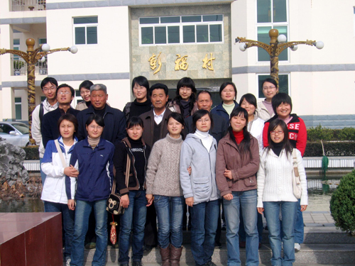 随后,村干部还带领同学们参观了整个彭福村,曲折的小路和别墅式的公寓,透射出江南水乡的静谧和乡村生活的安适。沼气池、自来水厂的建设及使用,则让大家感受到了一个正在发展中的社会主义新农村的生机和活力。临别时,同学们还与彭福村干部和村民们在“百字福碑”前合影留念。