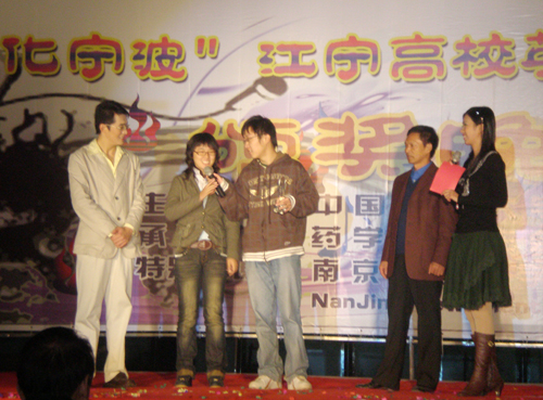 11月4日晚,在中国药科大学举办的“中化杯”江宁高校英语演讲交流赛颁奖晚会上,这三位同学合作的演讲获得最佳风采奖。
