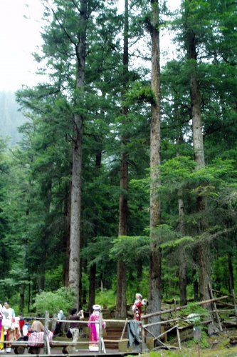 注:九寨沟原始森林积面广袤,日则沟顶端之森林,仅其之一也。置身层深林间,古杉高大笔直,仰望之帽落而浑然不知,待寻时已查无踪影,多是随风落入路旁沟内。脚踩厚软苔叶,鼻嗅芬芳湿气,耳听松涛鸟语,身拂野林山风,眼中林木郁葱,似莅人间仙境,焉无超凡之感?