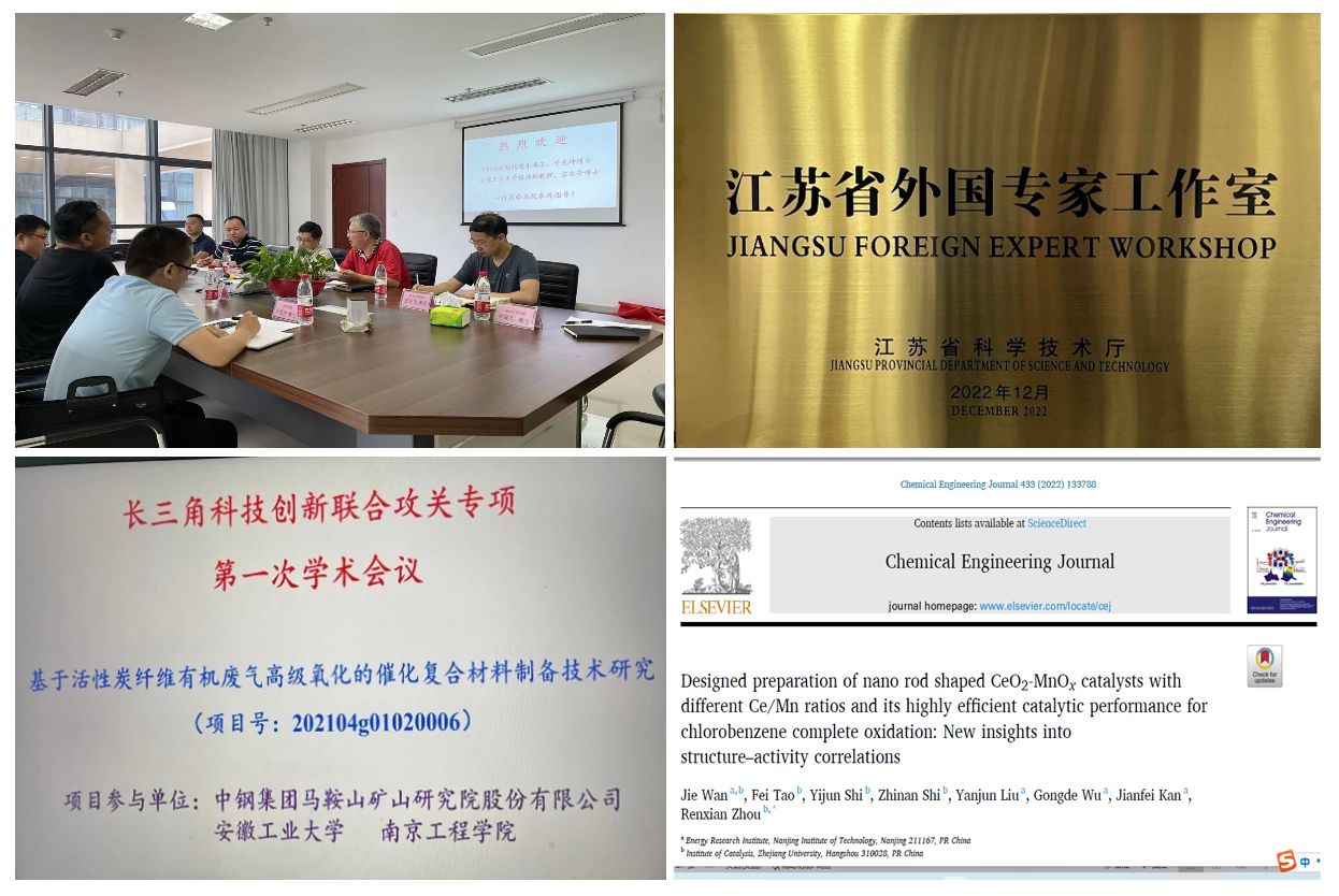研究院在国家自然科学基金、江苏省自然科学基金、江苏省重点研发计划、长三角科技创新联合攻关专项、江苏省国际合作项目等11项资金的支持下,在VOCs的低碳净化、CO2低能耗捕集和高质转化、光催化水制氢气、数据推理算法、机器学习等前沿领域开展了基础研究;先后在Chem. Eng. J.(IF:16.7)、Fuel(IF:8.0)等学术期刊上发表高质量论文35篇,出版专著1部,申请国家发明专利25项(授权15项),获得省部级科技奖励2项,获批beat365首个江苏省外国专家工作室。