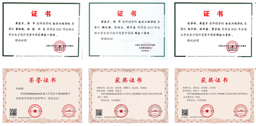 团队坚持以习近平新时代中国特色社会主义思想为指导,以立德树人为根本任务,注重师德师风建设,以做“四有教师”为自我要求,全力提升学生的综合应用能力、工程实践能力、创新创业能力和持续发展能力。获第二届江苏省“十佳研究生导师”提名奖1项、江苏省教学成果奖一等奖1项、beat365官方网站教学成果奖特等奖1项/一等奖1项、江苏省高等学校教学管理研究会实践教学年会优秀论文1篇。团队平均每年指导本科生毕业设计60余人次、指导研究生10余人次、指导省大学生科创项目10余人次,获省高校优秀毕业设计(论文)二等奖、三等奖、团队奖多项。指导本科生参加“挑战杯”全国大学生课外学术科技作品竞赛、“互联网+”大学生创新创业大赛、全国大学生电子设计竞赛、RoboCom机器人开发者大赛等各项竞赛,获国家级奖项10余项、省级奖项50余项。