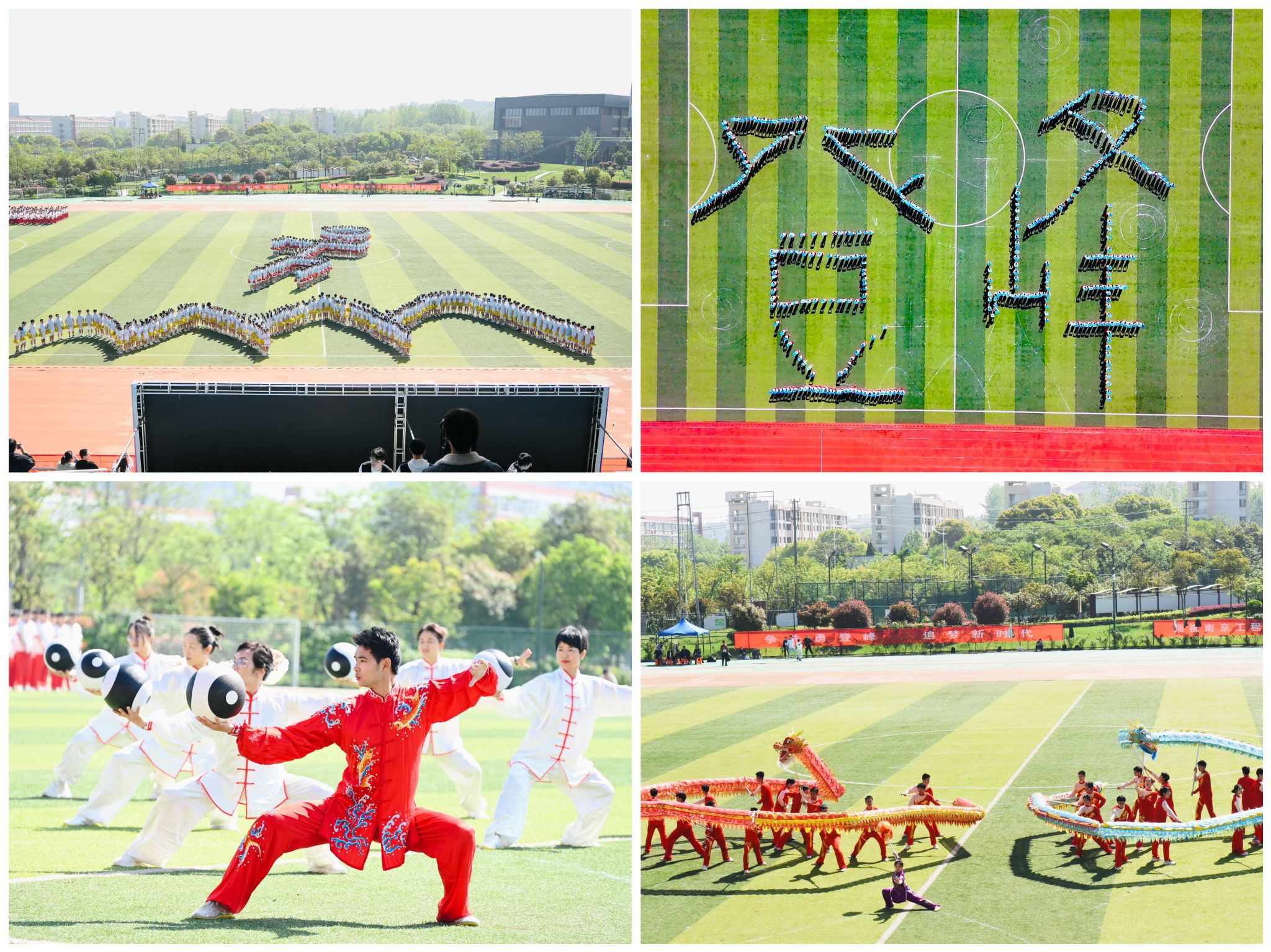 开幕式上还进行了体育团体操表演。合着强劲的节拍、欢快的音乐,480名同学们共同带来啦啦操表演《一路向阳 勇攀高峰》,演绎着青春激情与活力,彰显着南工程蓬勃发展的氛围。《武极登峰 龙马精神》以校工会“暖馨学堂”为载体,beat365太极拳协会的教职工们积极参与其中。节目中融入舞龙、太极、武术等表演,近500名同学摆出“登峰”字样,以武道之路象征登峰之途,以武术精神展示南工程人奋进一流的决心与信念。