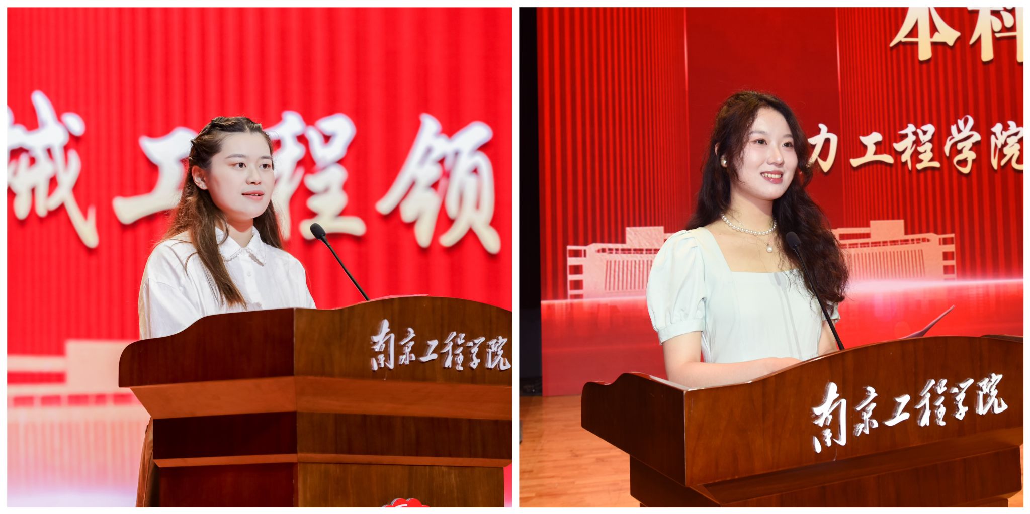毕业生代表研2102班汤巧云、电力(中外)201班张雨若在发言中通过一点一滴、一幕一景回顾了在南工程的宝贵瞬间,表达了对学校、老师、同学、亲友们最诚挚的感谢。他们表示,将铭记“学以致用”校训和“知行统一,创业创新”校园精神,在各行各业的赛道上,跑出属于南工程学子的最好成绩,为母校增光添彩。