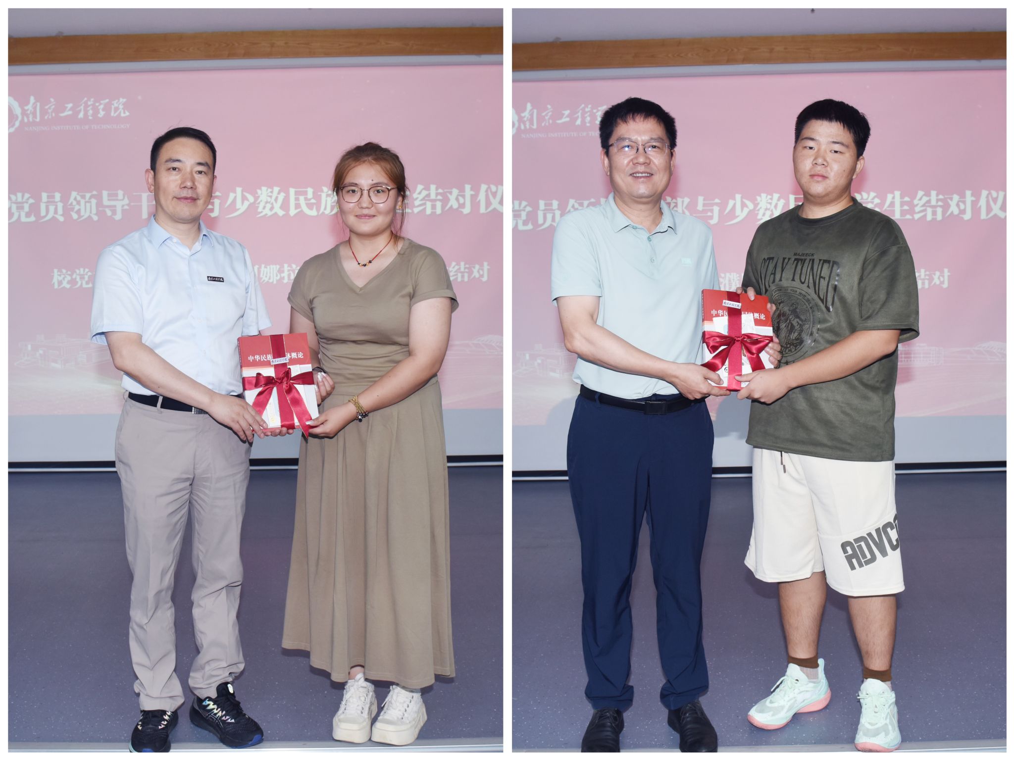 会上,孙爱武和濮励杰分别与阿娜拉·阿吉白克、徐应鹏两位同学结对共建。与会领导老师共同向少数民族新生代表赠送了书籍和纪念品。