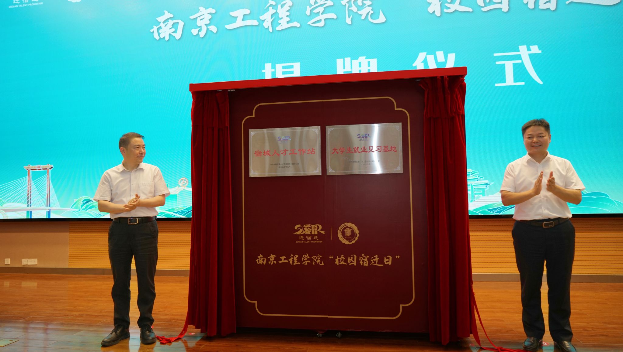 在与会人员的共同见证下,孙爱武、谭永恒共同为“宿城人才工作站”“大学生就业见习基地”揭牌。
