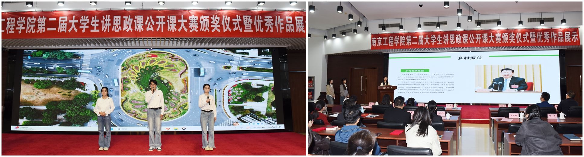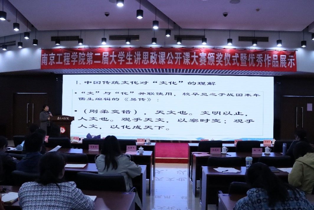 此次大赛以“探寻金陵古城,解码文化自信”为主题,围绕“行走的思政课”和“场馆里的思政课”两个系列的思政课实践活动展开,共收到来自各院系的120项参赛作品。参赛作品内容丰富、角度多元、创意新颖、制作精良,最终评选出一等奖6项、二等奖10项、三等奖14项和优秀指导教师13名。与会领导为获奖师生颁奖。