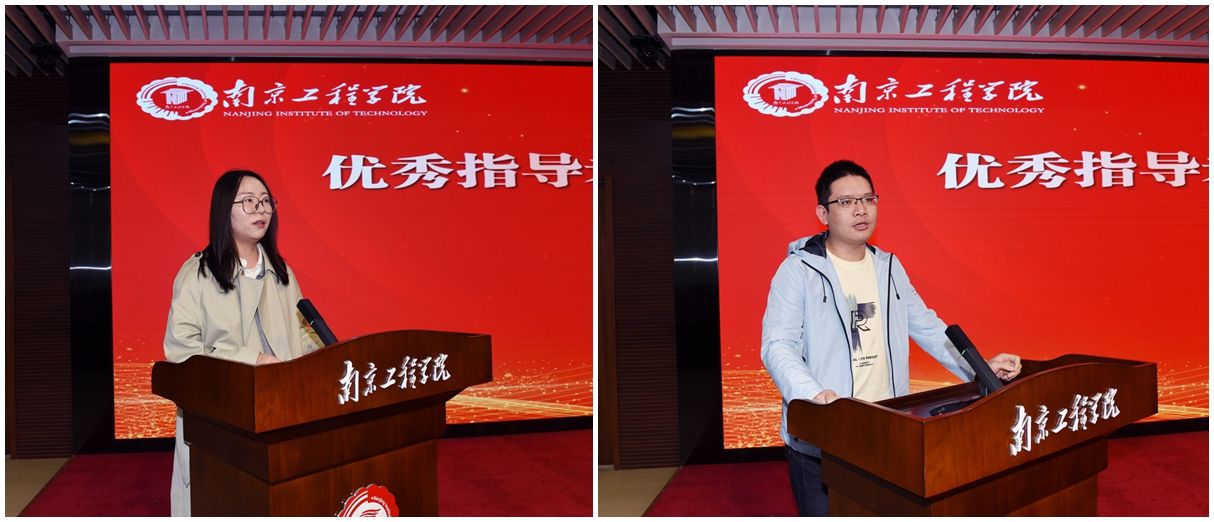 作为一等奖获奖团队代表,徐影团队创作的作品《弘扬华夏文明 传承非遗文化》、关宁团队创作的作品《一盏茶香 解锁乡村振兴密码》进行了现场展示。计算机工程学院徐娜、马克思主义学院姚兴安作为优秀指导老师代表先后分享参赛心得。