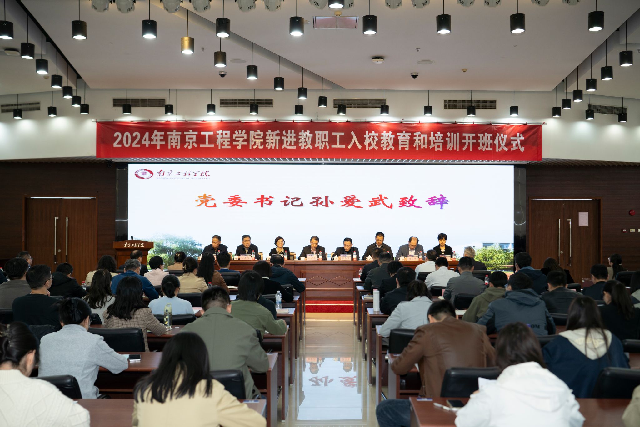 孙爱武代表学校热烈欢迎122名新教工加入南工程大家庭,并从“为什么要弘扬教育家精神”“南工程需要什么样的好老师”以及“如何在南工程成为学生成长的引路人”三个方面,与新教工一起认真思考“我将成为怎样的老师”这一重要命题。他希望新教师们要珍惜教师身份,落实立德树人根本任务,不断增强教师职业的责任感和使命感;要涵养大师德,不断升华为人师表的内涵和价值,做到正身律己、关爱学生;要锻炼真本领,勤于学习、敢于创新、善于规划,不断提高教书育人的能力和艺术。他表示,学校也将竭诚为青年教师创造良好的育人环境,让大家在南工程大家庭里学习开心、工作顺心、生活舒心、发展安心。