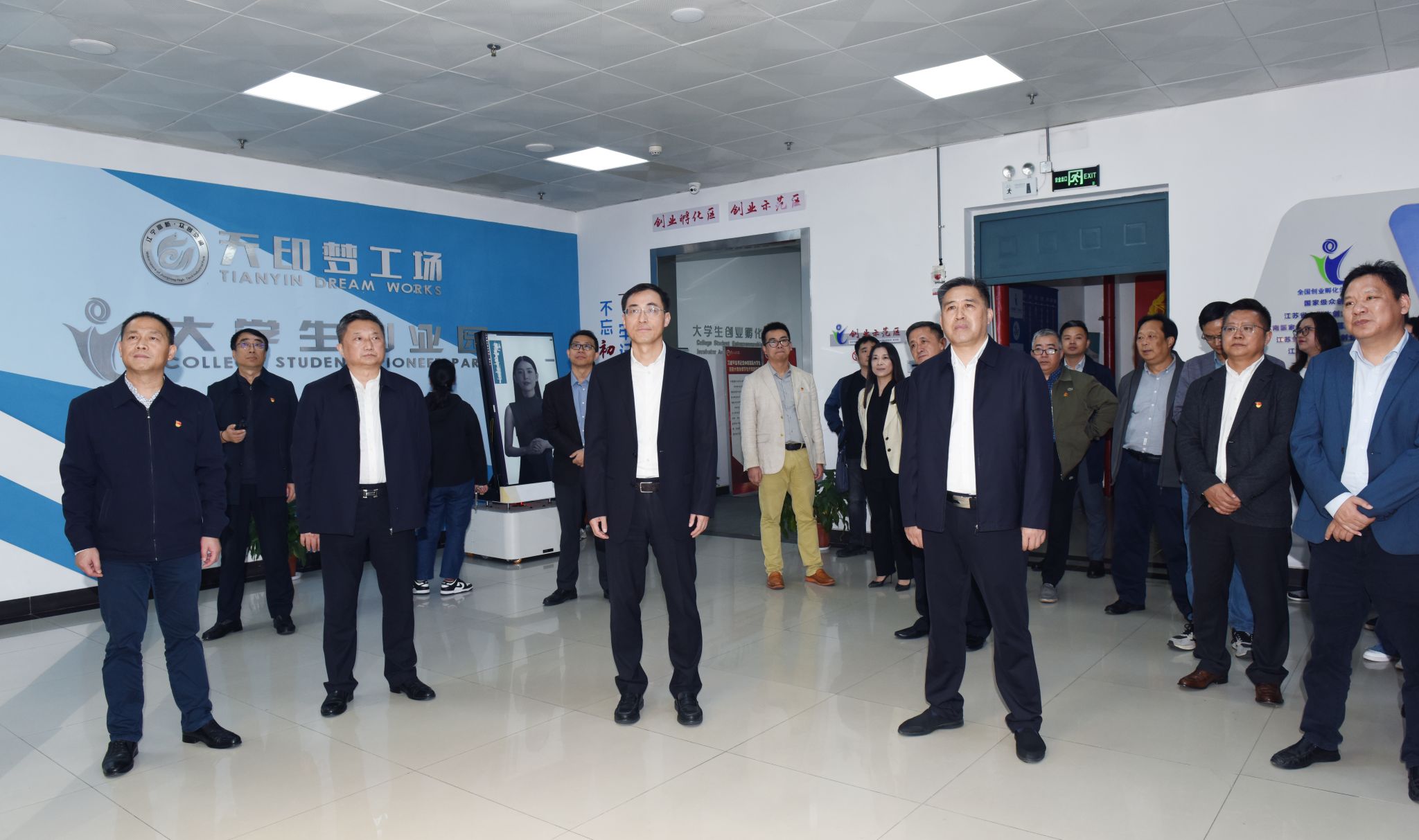 会前,来宾一行实地参观了创新创业学院和大学生创业园“天印梦工场”。