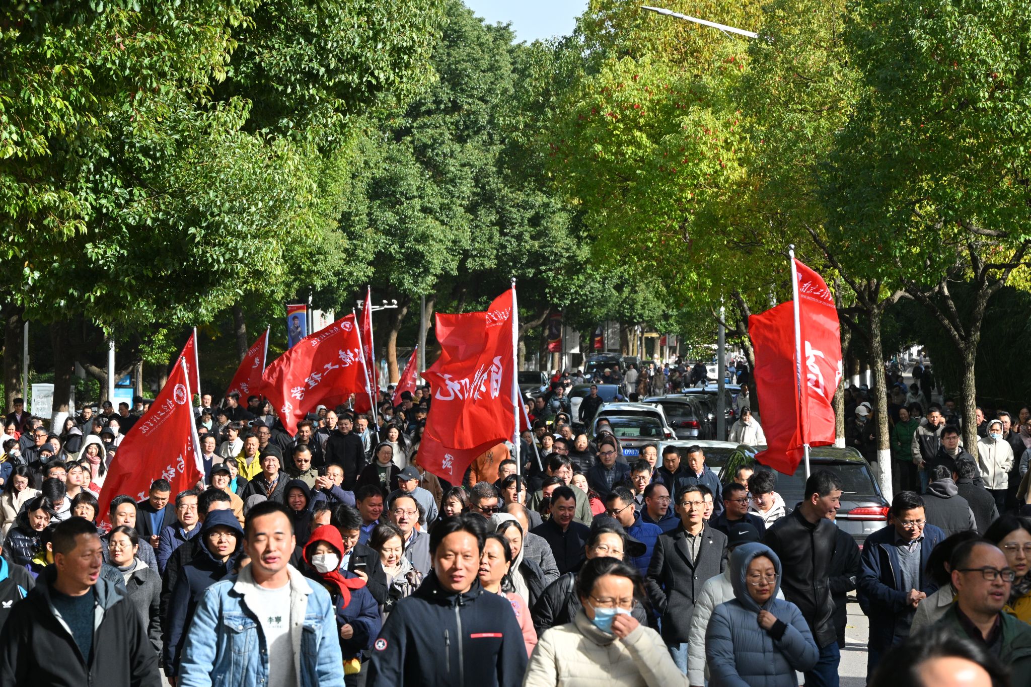 11月27日下午,天健苑·体育中心广场上人潮涌动、鼓声阵阵、狮舞虎跃,一年一度的教职工校园健身行活动如期举行。此次活动以“昂扬健步启新程,登峰逐梦铸辉煌”为主题,吸引了全校27个分工会(直属小组)近1700名教职工踊跃参与,共享运动乐趣。