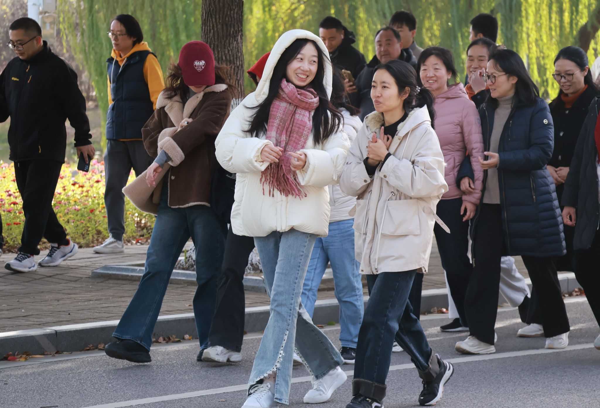 在全程4公里左右的既定路线中,教职工们兴致高昂,或三五成群,谈笑风生,交流着工作中的妙思;或两两相伴,轻声细语,分享着彼此生活中的点滴;或独自悠然,静思冥想,享受着心情的放松和自然的美好。闲话清谈,欢声笑语,为天印湖畔增添了一道别样的靓丽风景。