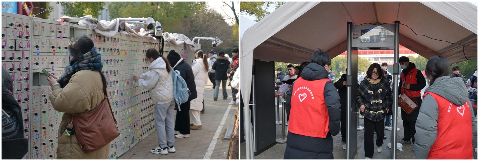 学校以人为本、关怀考生,从小处着眼、从细节入手,在考前及考试期间推行多项暖心举措,为寒冬里的研考保驾护航。考前,学校相关微信公众号、网站发布公告,就诚信考试、考生须知、入场安检提示、考场分布等各类信息,向考生做好温馨提醒。考试当天,在各入口和沿路设置指路牌,安排志愿者引导考生到达考场区域;设置“彩虹研行”“南小橙团团”“天印先锋”志愿者党员服务站,为考生咨询、存放大件物品、失物招领等提供便利;安排校外考生专用食堂及休息区域、配备考试医疗应急保障人员等,实现研究生招生考试组考工作既“严”又“暖”。