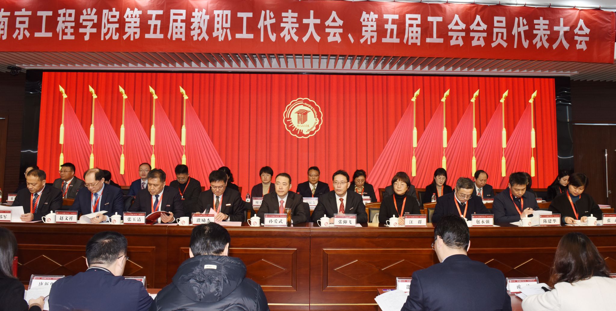 12月26-27日,学校在至勤楼•行政中心二楼多功能厅召开第五届教职工代表大会、工会会员代表大会。省委教育工委副书记、省教育厅党组成员潘漫,省教育科技工会副主席崔文华,省委教育工委统群处四级调研员顾春锋出席会议开幕式。全体在宁校领导,234名正式代表及8名特邀代表、27名列席代表参加会议。大会由党委副书记濮励杰主持。