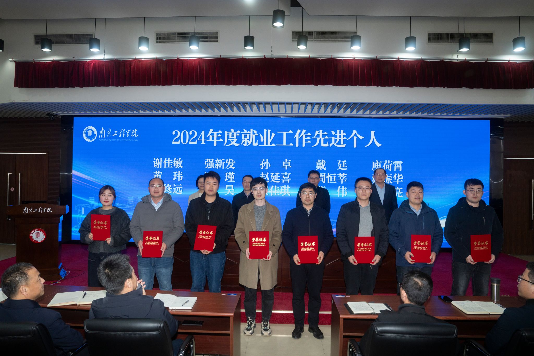 赵文祥宣读2024年就业工作表彰决定。材料科学与工程学院等5个学院荣获“就业工作先进集体”,机械工程学院等3个学院荣获“就业工作进步奖”,自动化学院等3个学院荣获“升学进步奖”,强新发等15名同志获得“就业工作先进个人”。校领导为获得表彰的先进集体和先进个人颁发奖牌和证书。